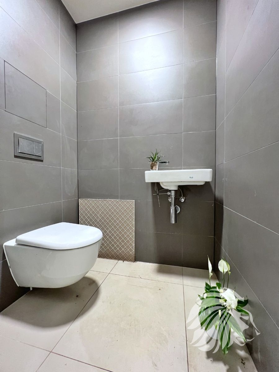 Podlaha pokryta velkoformátovou dlažbou, vytápění dálkové s topnými tělesy včetně ohřevu teplé vody. Bodová stropní svítidla na svěšené konstrukci. Nyní je v prostorách chladící místnost na květiny – ponechání v rámci přenechání za úplatu.