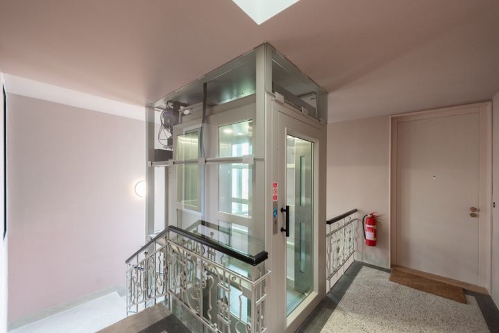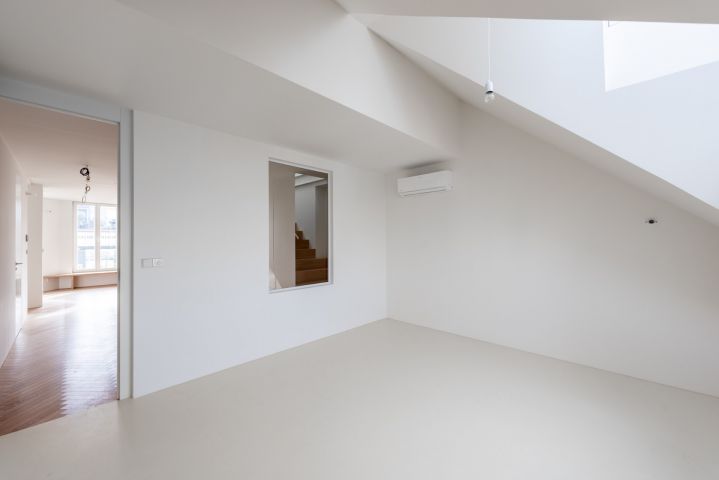 Každé patro má svou koupelnu a kontakt s venkovním prostředím prostřednictvím terasy a lodžie. Patra spojuje bezpečné, ocelové, masivním dřevem obložené schodiště. Např. ložnice v 6.patře je ozvláštněna atypickými nikami. Dveře v celém bytě mají skryté zárubně.