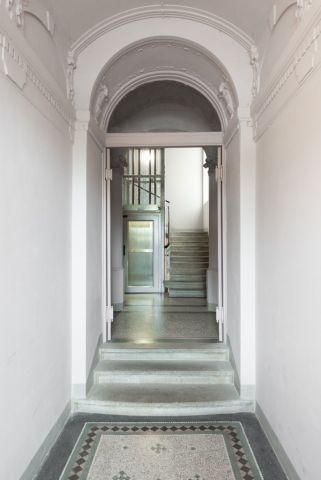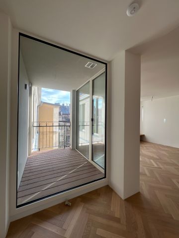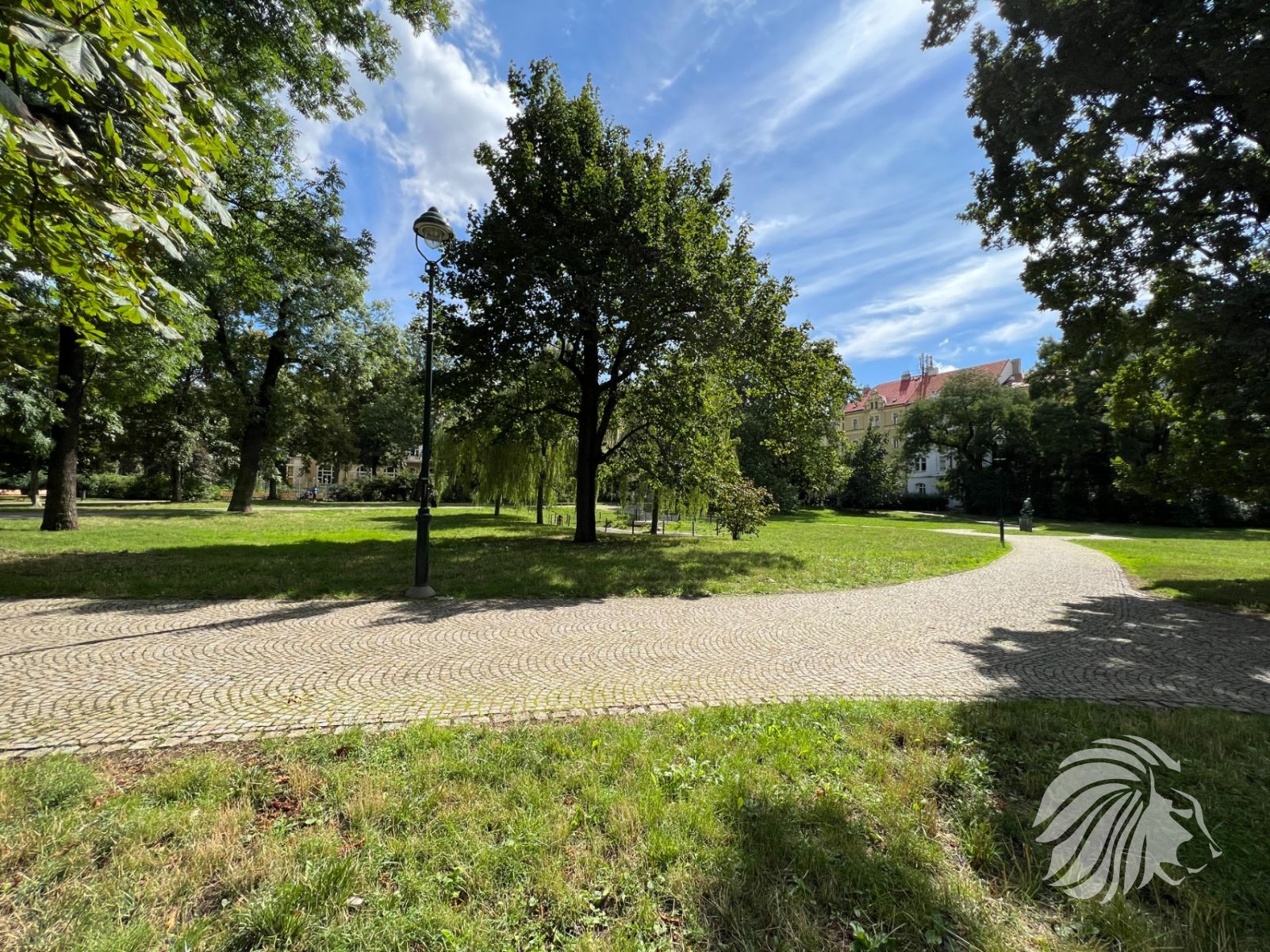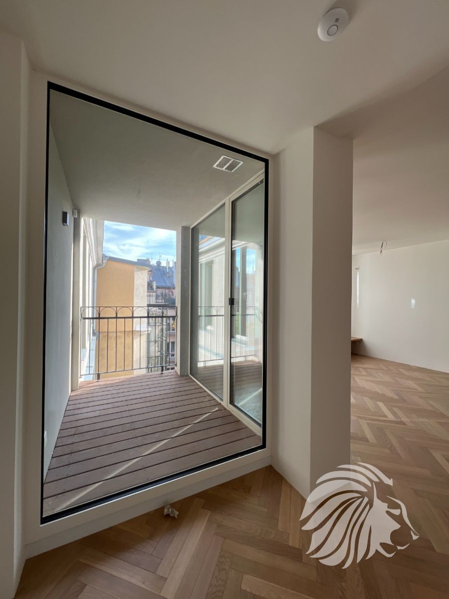 Nadstandardní, energeticky velmi úsporné bydlení je orientováno na SZ do ulice a JV do velmi klidného vnitrobloku, kam směřuje jak terasa, tak i lodžie. Obě jsou pokryty vysoce odolným exotickým dřevem Iroko. Pohled do vnitrobloku je velmi příjemný díky jeho rozlehlosti a fasádám po rekonstrukci.