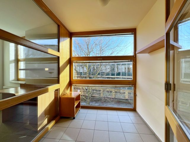 V této prostorově nadstandardní garsonce využijete díky výklopné posteli optimálně prostor, spojíte pohodlí a praktičnost. Užijete si klid díky umístění domu obklopeného vzrostlou zelení na okraji zástavby. Přesto např. na metro „B“ Anděl nebo do obchodního centra Nový Smíchov se dostanete chůzí do 10 minut. Zimní zahradu si můžete otevřít jako lodžii a nábytek můžete, ale nemusíte využít.