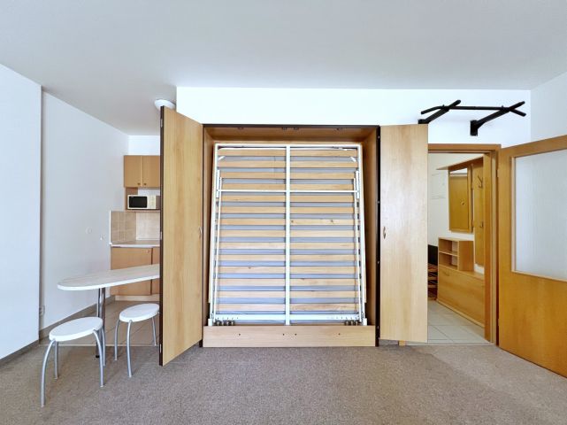 Byt prošel generální přípravou. Je čerstvě kvalitně vymalován a zkontrolován do nejmenšího šroubku, včetně mechanismu postele. Je perfektně čistý a připraven pro nového nájemce.
