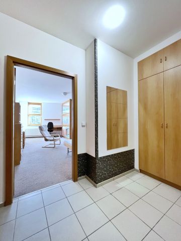 Nabízíme vám dlouhodobý pronájem prostorného bytu 1+kk se zimní zahradou v bytě a sklepem 1,8 m² v suterénu domu v lokalitě Smíchova v bytovém domě na ulici Tomkova 3166/1, Praha 5. Byt o výměře 45,5 m² se nachází ve 3. NP (2.patro) bytového domu s výtahem z roku cca 2001 s moderním nadčasovým designem.