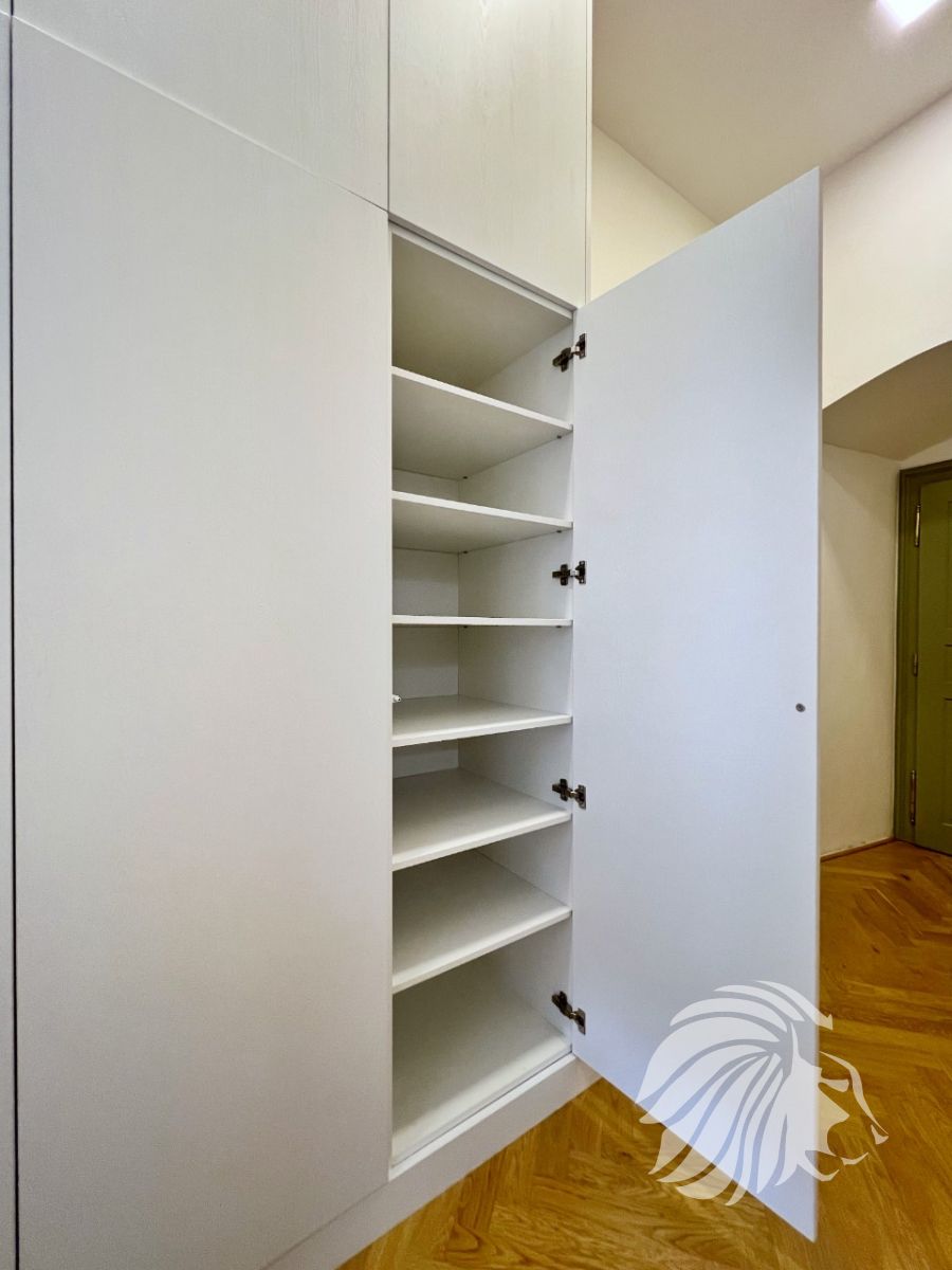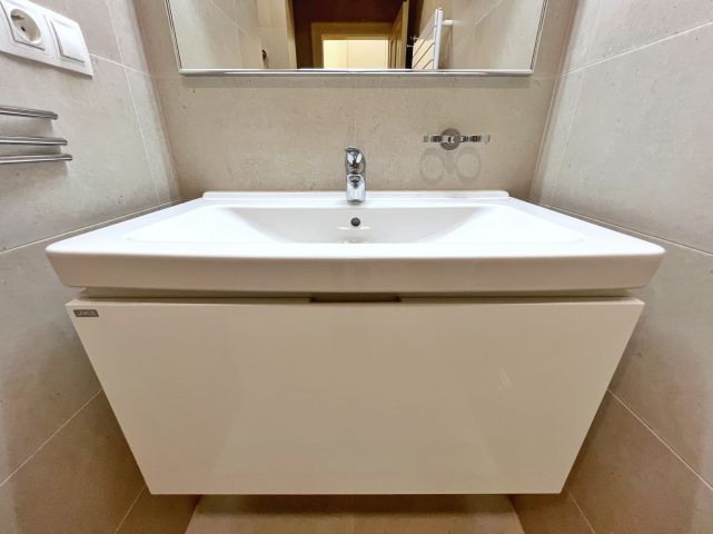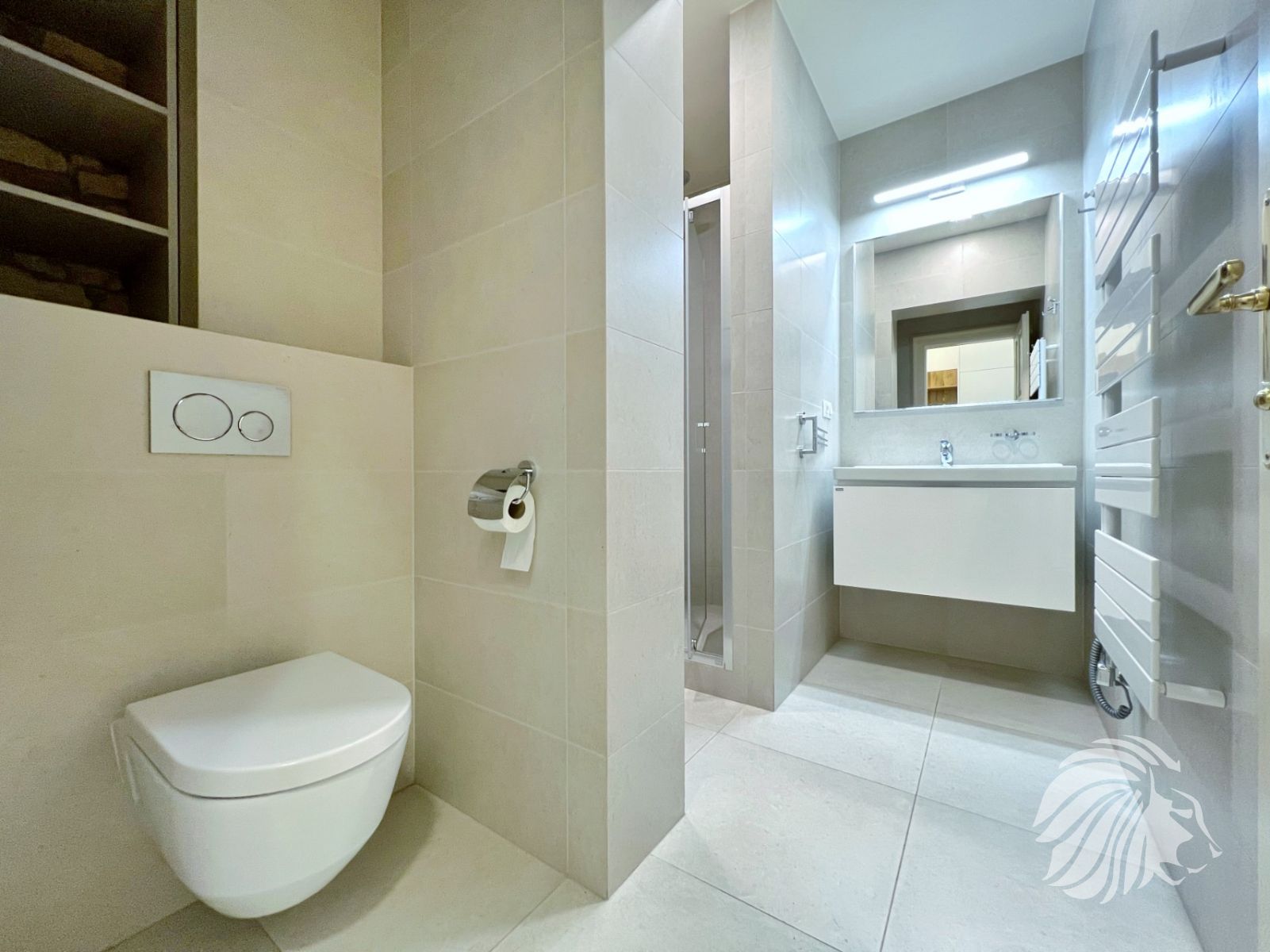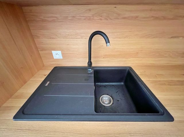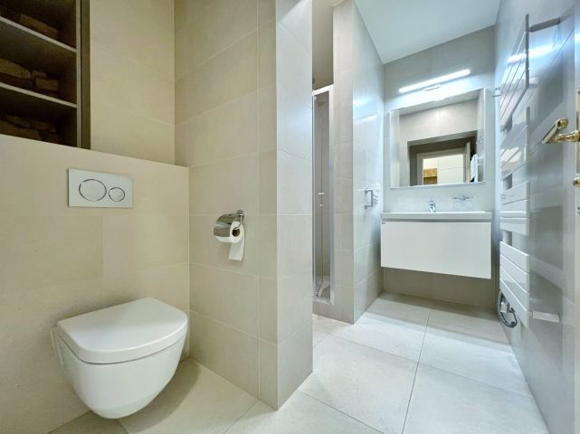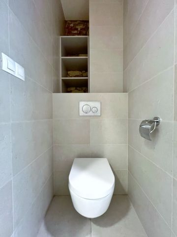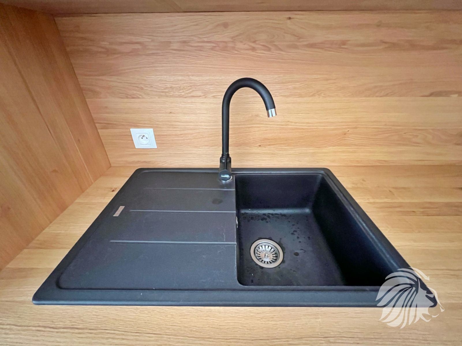 Byt je po generální a velmi zdařilé rekonstrukci s důrazem kladeným na přírodní materiály (dřevo) a spoustu úložného prostoru. V bytě dominují zdi s přiznaným kamenným zdivem v obou místnostech i na WC.
