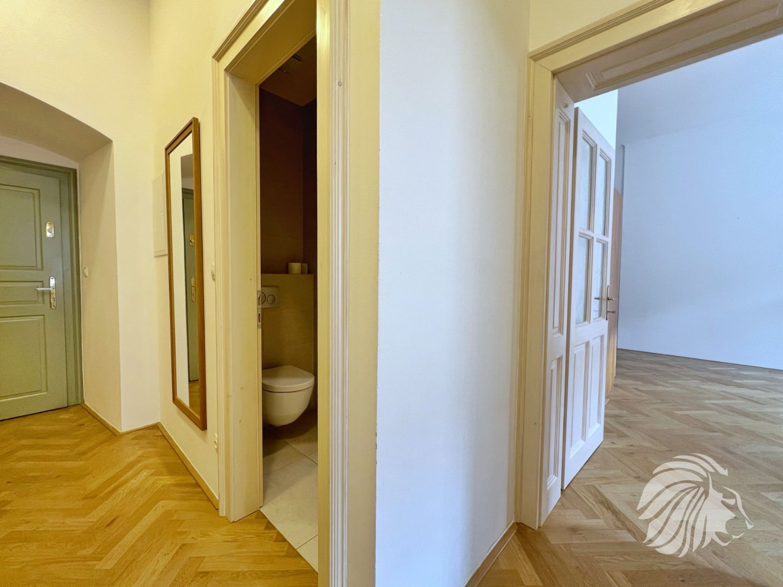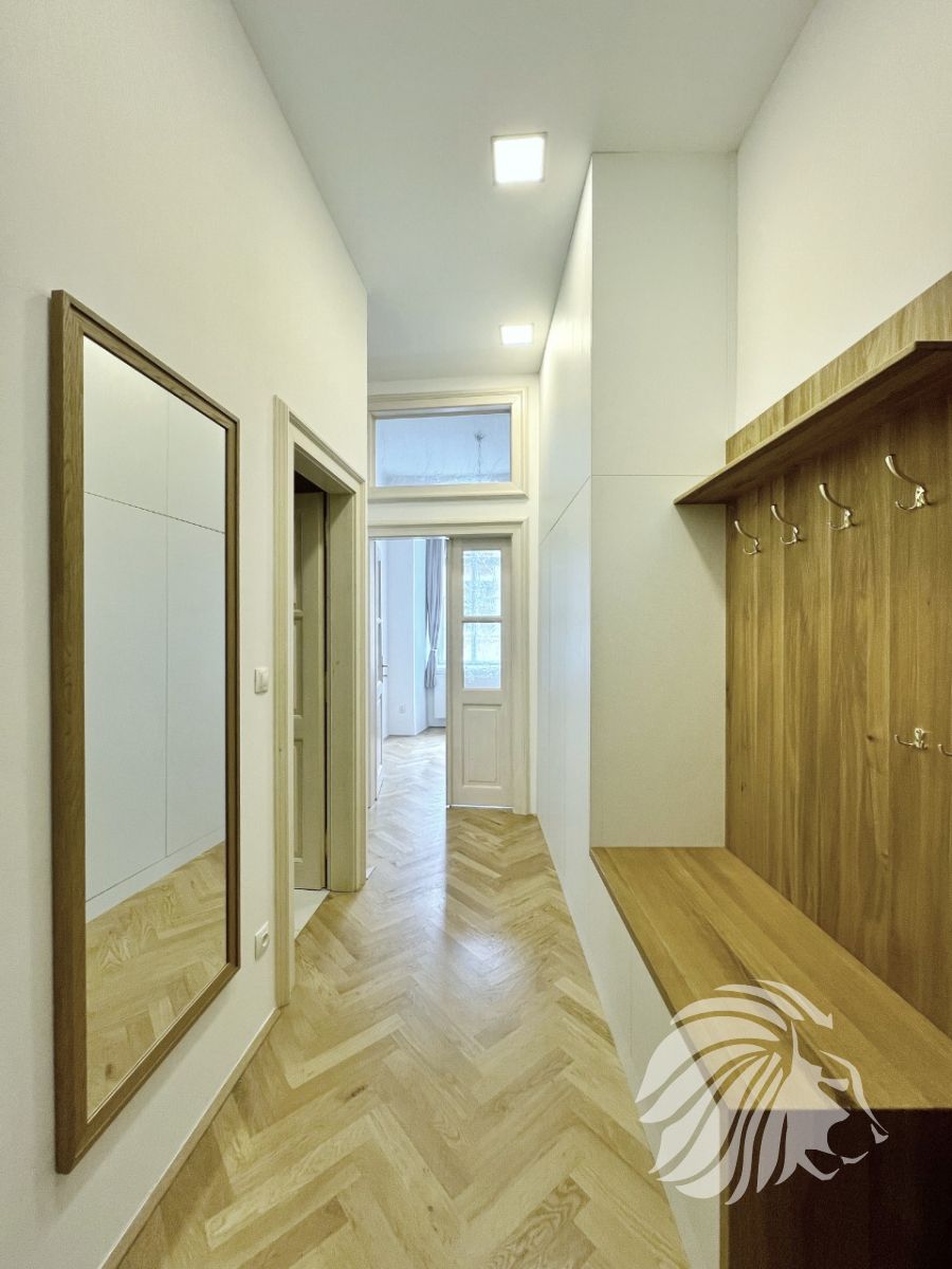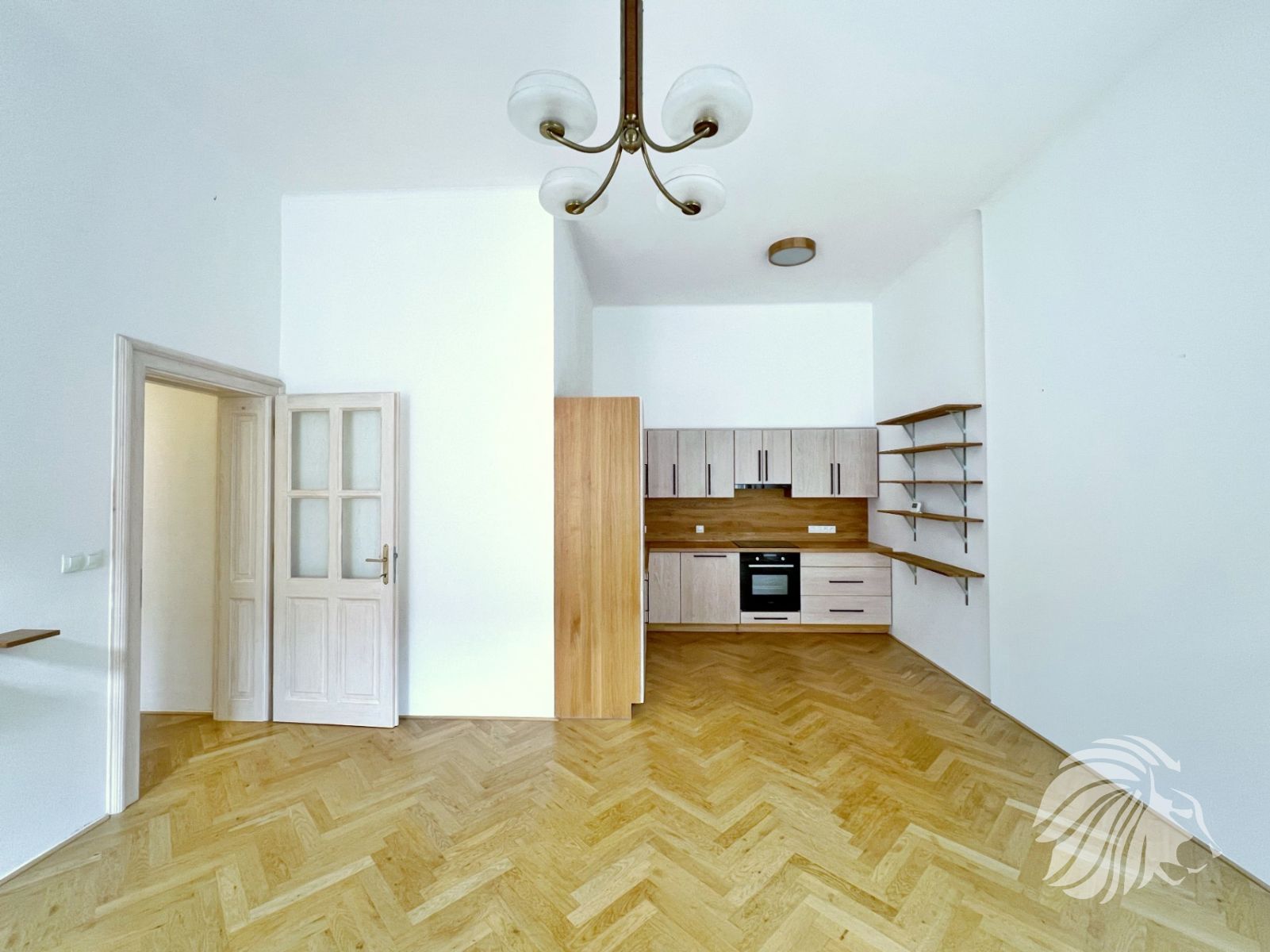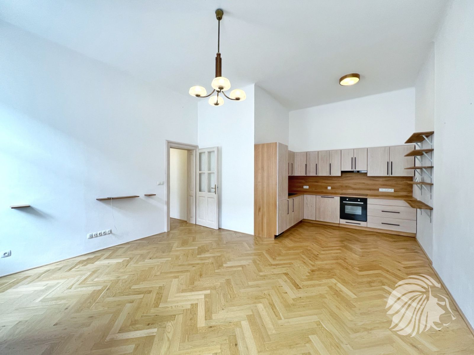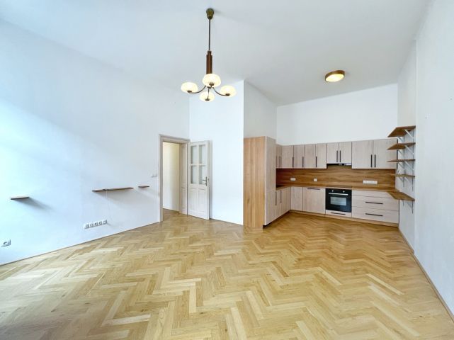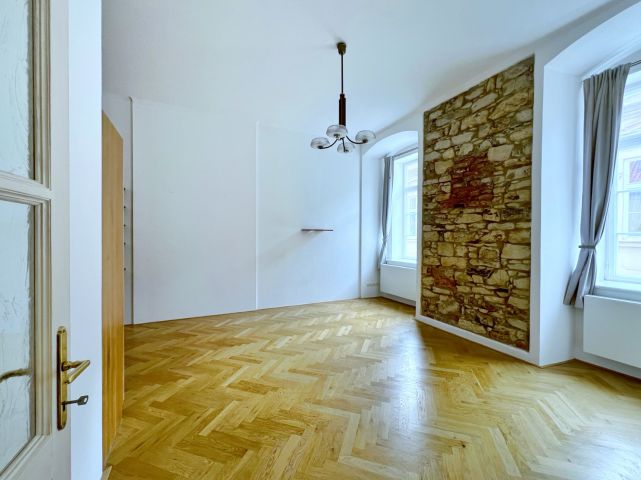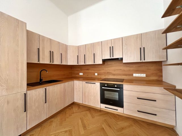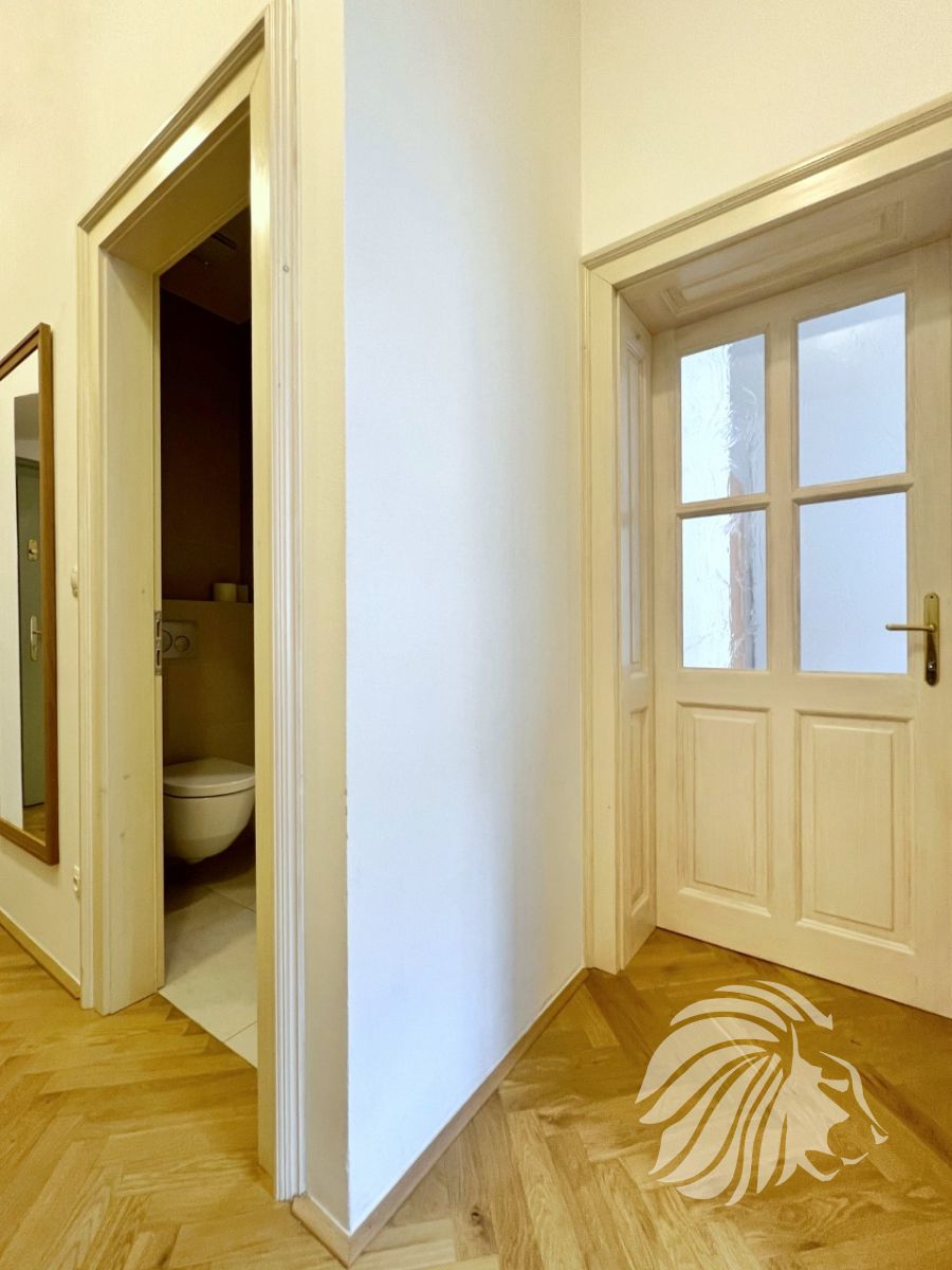 Byt po kompletní rekonstrukci o výměře 47,4 m² je situován ve 2.patře domu bez výtahu. Vstup do bytu vede průchodem, dále nádhernými společnými prostorami a pavlačí. Pavlač a bytovou jednotku rozdělují dvojité dveře. Součástí bytu je nádherně zrekonstruovaný sklep v suterénu domu o výměře 4,9 m².