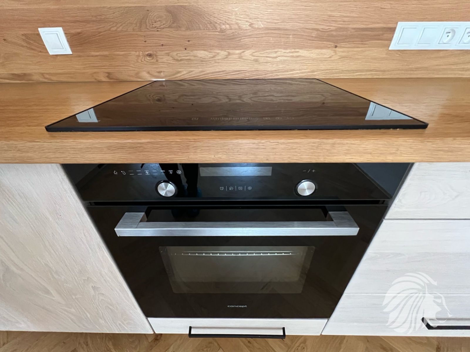 Fotografie odpovídají skutečnému stavu. Kuchyňská linka vybavena vestavěnou lednicí s mrazákem, indukční varnou deskou, el. pečicí troubou, digestoří, granitovým dřezem. Vytápění prostřednictvím vlastního plynového kotle. Podlahy pokryty dřevěnými parketami a dlažbou.