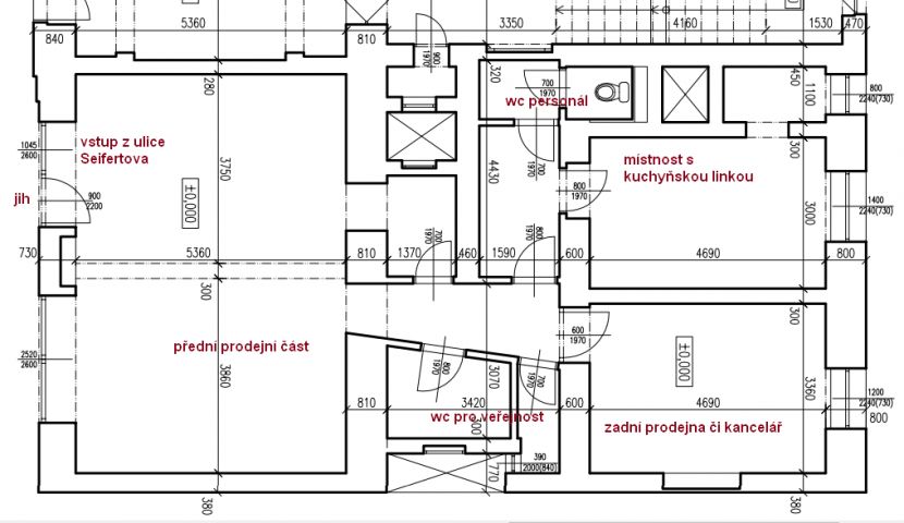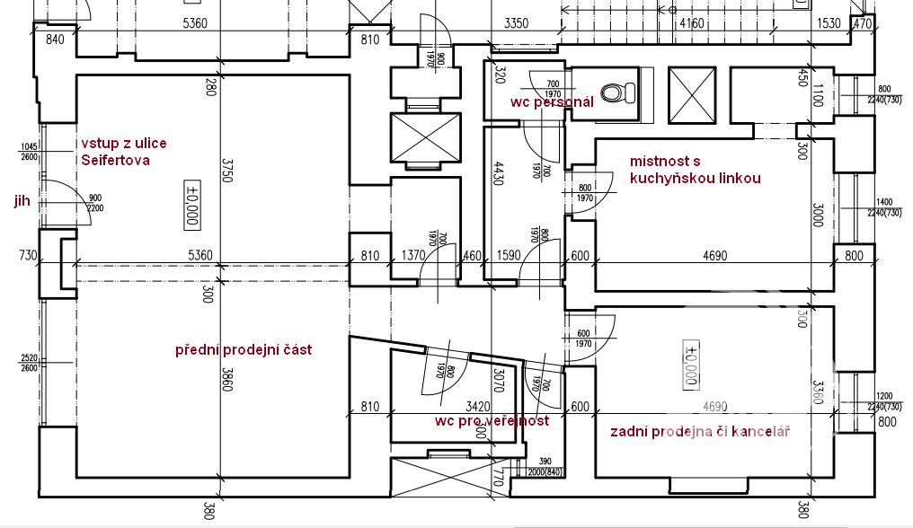 Hlavní prodejní část je orientována do ulice Seifertova na jižní
