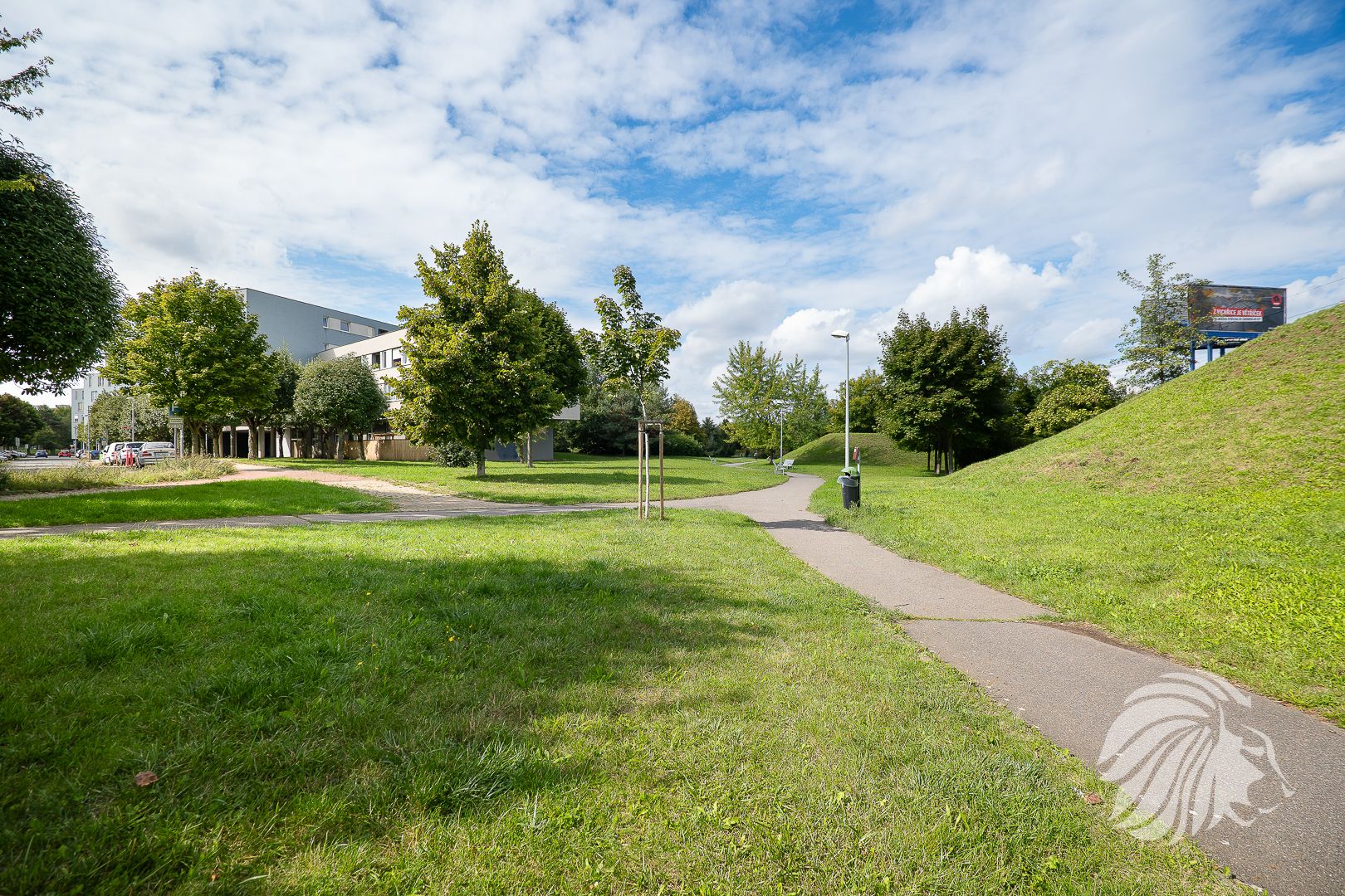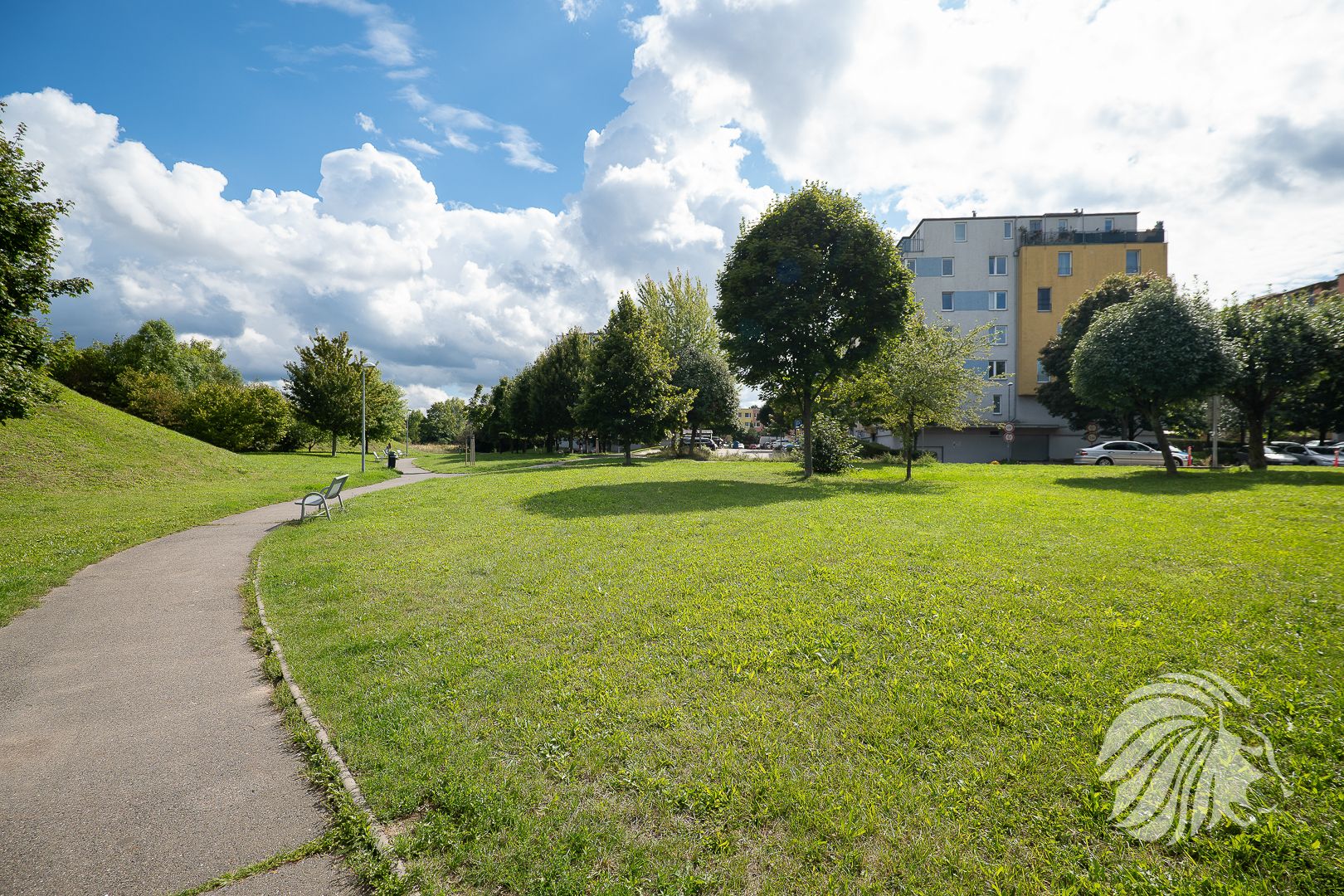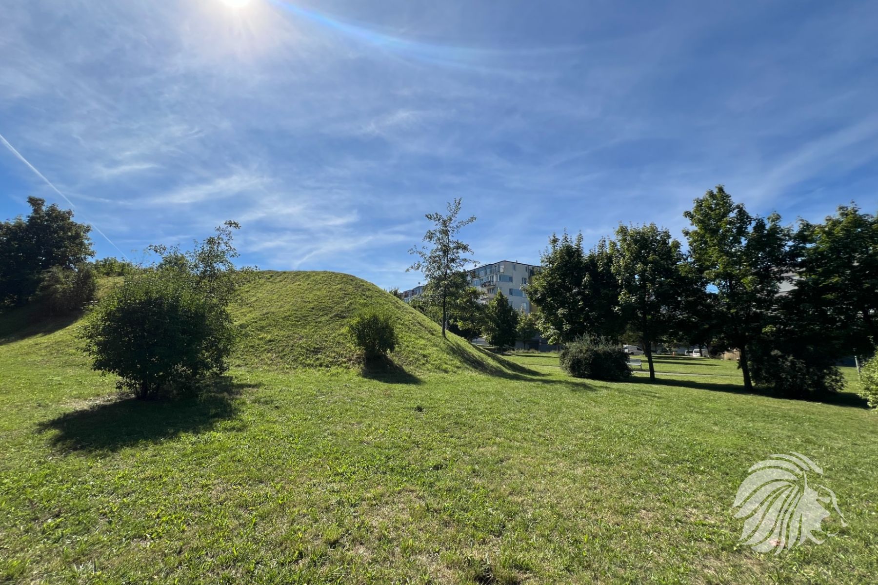K bytu náleží také podíl na okolních pozemcích. Na západní straně domu je udržovaná zahrada se vzrostlými stromy. V těsné blízkosti se rozkládá rozsáhlý park s bohatou zelení a lavičkami – ideální pro procházky se psem, sport i relaxaci. Váš podíl na něm činí 1/510.