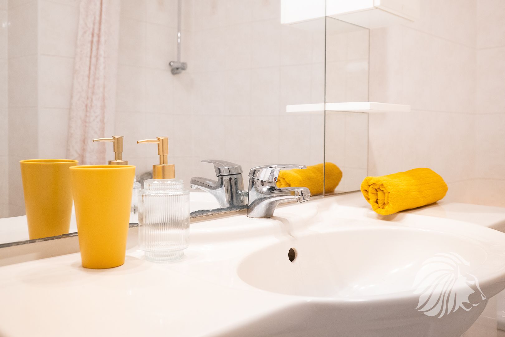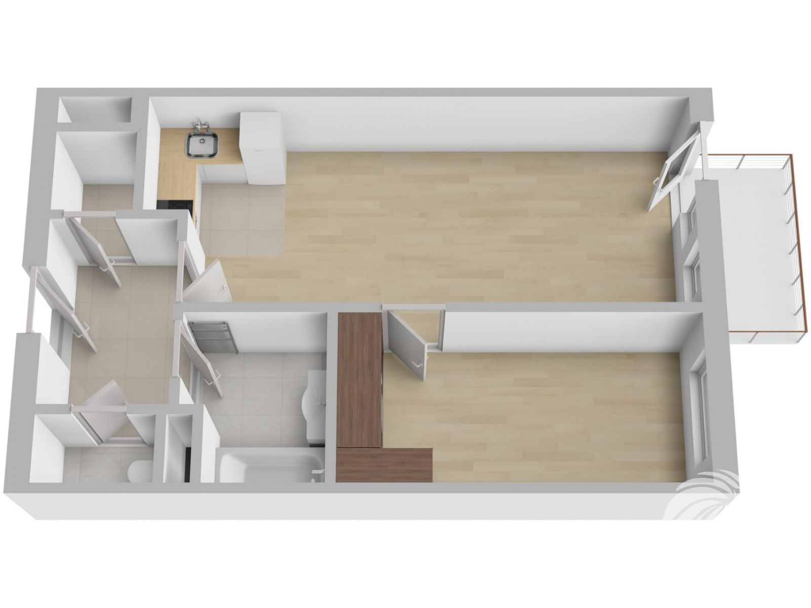Bytová jednotka je v podobě, v jaké byla zkolaudována v srpnu 2005 – bez zásahů či modernizací. Poskytuje prostorný dojem, zejména díky komoře v bytě a možnosti využít prostor na WC či v koupelně pro vestavěné úložné systémy. Obývací pokoj spojený s kuchyňským koutem má výměru 24,94 m² a umožňuje variabilní uspořádání nábytku dle potřeb.