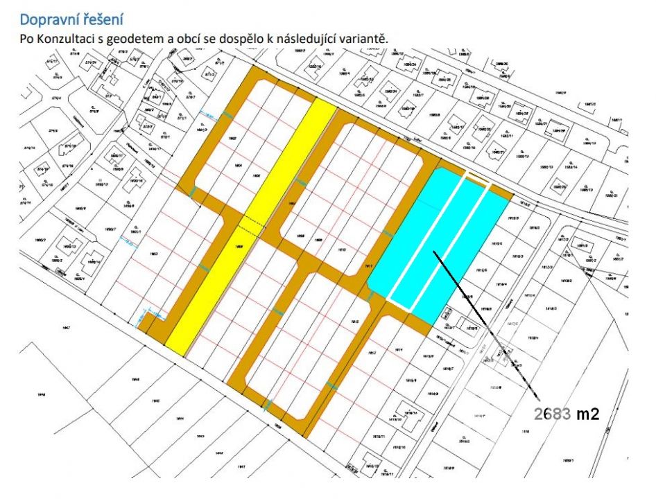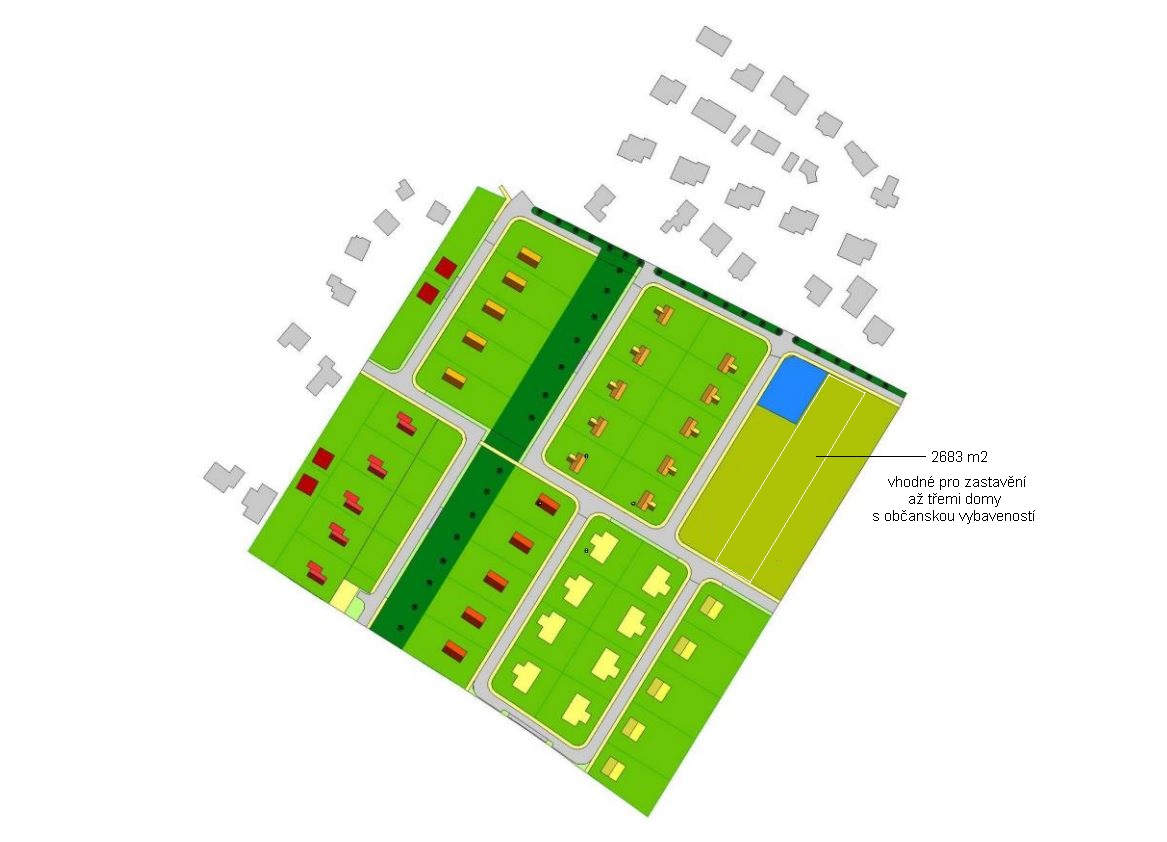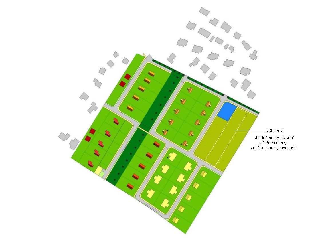 Foto: Územní studie. Výměra 2683 m², vhodné pro zastavění až třemi