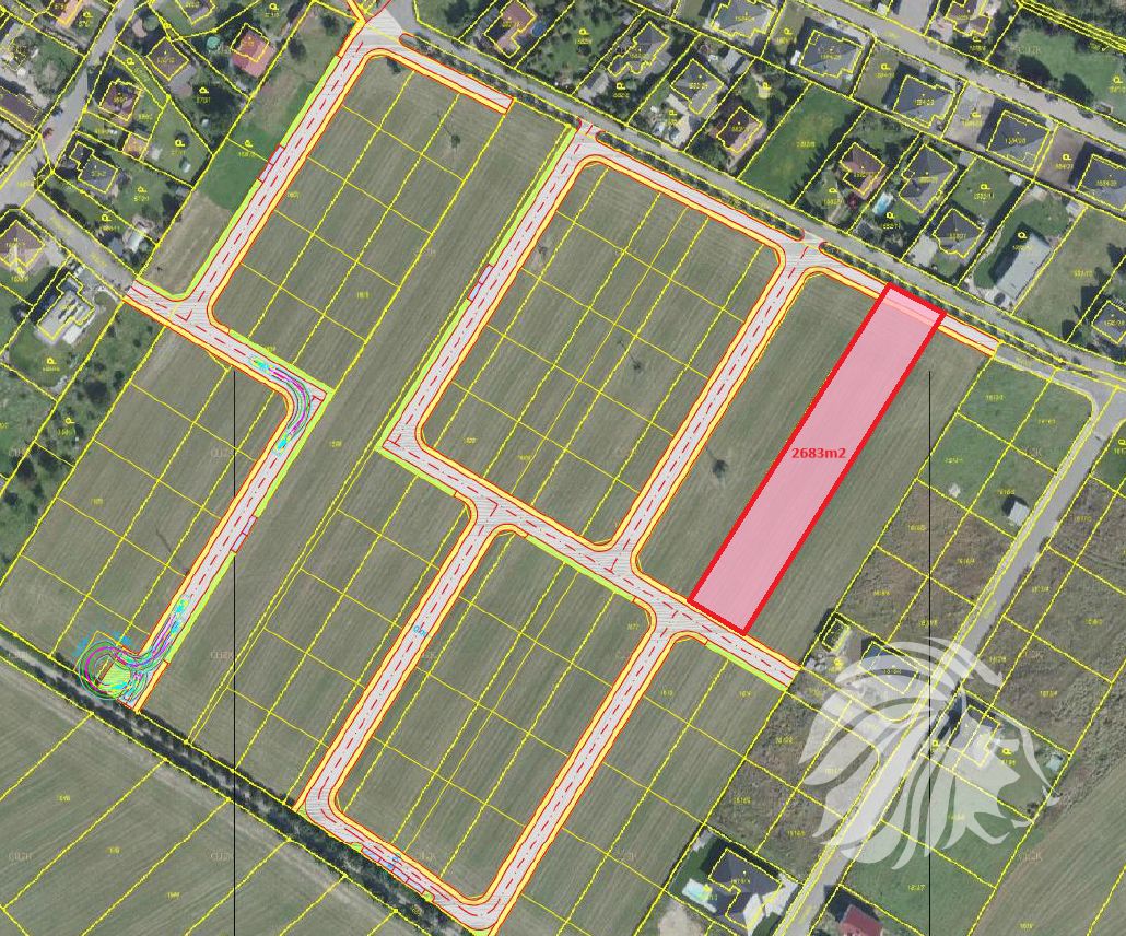 My vám v této lokalitě exkluzivně nabízíme rovinatý pozemek, o ploše 1300 m² nebo o ploše 2683 m². Nyní je na pozemek vypracován návrh geometrického plánu, který oddělí tuto vyměřenou část ( 1300 m²/2683 m²) od celkové plochy 5591 m² (připraveno na vložení do katastru). Oddělovaná část je zakreslena ve fotodokumentaci a na dronových snímcích o celkové velikosti 2683 m². Parcela je umístěna v lokalitě označené v územním plánu jako Z10 „určeno k bydlení a umístění občanské vybavenosti“. Na celku 2683 m² je možné v horizontu cca 2 let postavit ideálně 2–3 objekty sloužící k poskytování služeb a zároveň k bydlení. Ve fotogalerii se můžete podívat, jak pozemek zapadá do územní studie. Současný kup parcely je výbornou investicí do budoucna (nyní se stavební parcely v tamější lokalitě obchodují od minimálně 8000 Kč/m².)